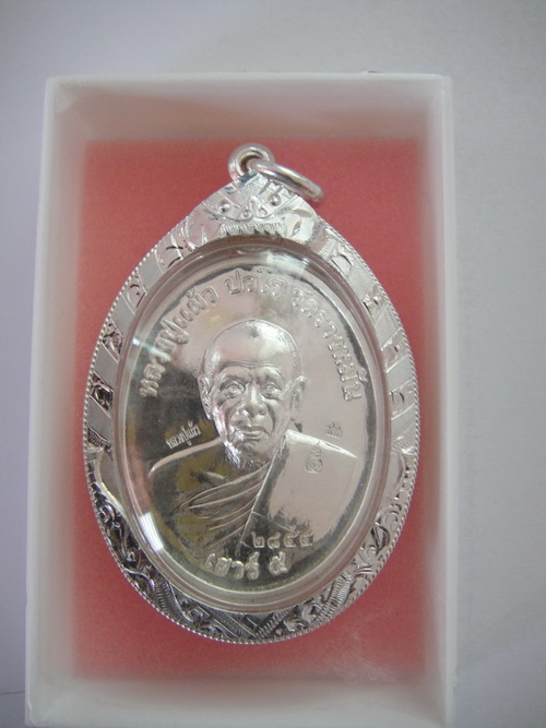 เหรียญหลวงปู่แผ้ว ปวโร วัดรางหมัน นครปฐม  ๕ พ.ค. ๕๕  ที่ระลึกยันต์สวน เสาร์ ๕ เนื้อเงินเลี่ยมเงินกันน้ำอย่างดี