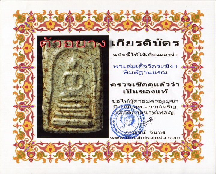 หากก่อนเช่าท่านควรศึกษา ด้วยตัวท่านจะดีที่สุด หรือพาผู้ชำนาญที่ท่านนับถือมาช่วยดูพระให้ เพราะวงการพระเครื่องบ้านเรามีหลายสมาคม ความคิดแตกแยกแสดงว่ายังไม่ได้มาตราฐาน เช่าจากเซียน วันนี้บอกแท้ปีหน้าให้ดูอีกครั้งส่ายหน้า ว่าไม่ชอบ ไม่แท้ เพราะจำพระตัวเองไม่ได้ทั้งอาศัยพวกมาก ลากกันไป(เซียน=สมาคม=พระพวกพ้อง=ที่อื่นเก๊)  ก็พระกู พวกกูเยอะ กูว่าดี ส่วนพระมึง พวกน้อย กูว่าไม่ดี  ไม่ชอบเนื้อไม่ถึง ทั้งยังชอบอำพราง ความเป็นจริง ในการเล่นหาจนเกิดความสับสนแก่นักสะสม แต่เซียนที่ดีก็มี,ฉะนั้น ผมจะรับประกันความพอใจ โดยหากต้องการเปลี่ยน/คืนพระ  เงื่อนไขหัก 20%ภายใน20วัน แต่พระต้องคงสถาพเดิม