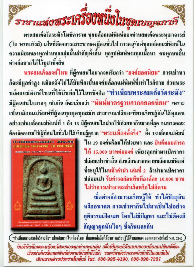 สุดท้ายนี้ ขอให้ทุกท่านได้ครอบครอง "พระสมเด็จ" อันเป็นวิญญาณปรารถนาของบรรดานักนิยมพระเครื่องทั้งหลาย สวัสดีครับ