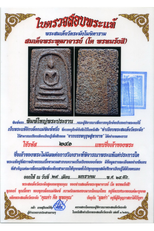 พระสมเด็จสองคลอง พิมพ์ใหญ่ สภาพเดิมๆสวยมาก ไม่มีหักหรือซ่อม พร้อมใบเซอร์