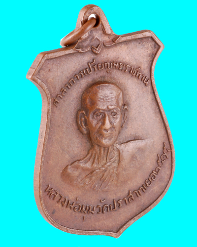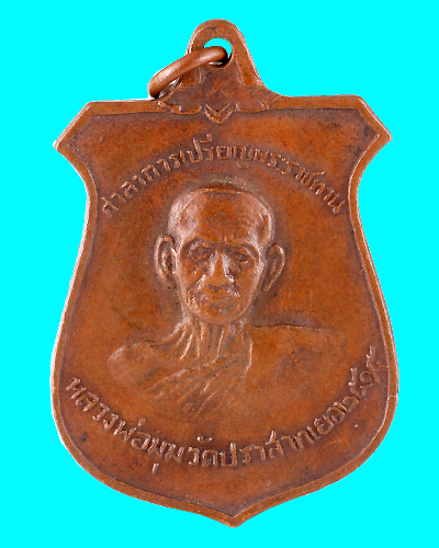 เหรียญหน้าบันหลวงพ่อมุม 7กา วัดปราสาทเยอร์ จ.ศรีสะเกษ ปี 2515 อายุพระเครื่อง 41ปี