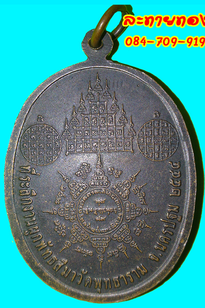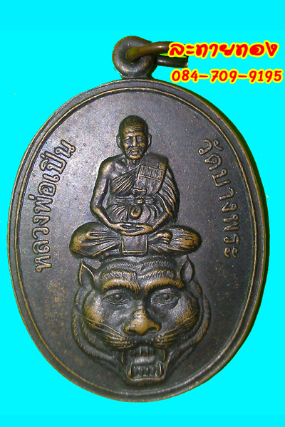 เหรียญไข่ใหญ่ นั่งหัวเสือเต็มองค์ หลวงพ่อเปิ่น วัดบางพระ ออกวัดพุทธาราม ปี 44