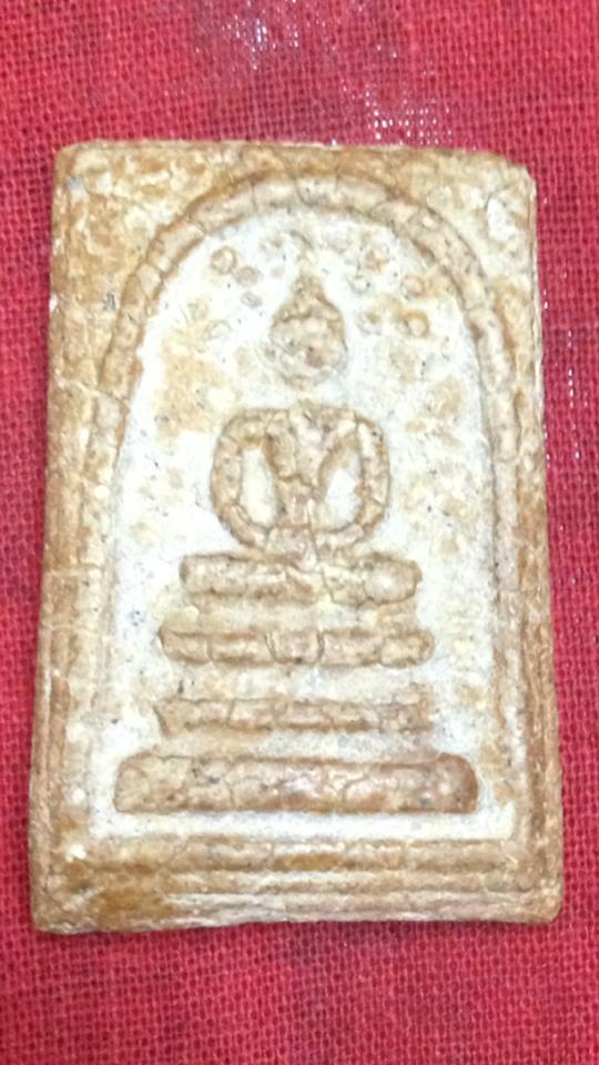 พระสมเด็จวัดระฆังฯ พิมพ์ปรกโพธิ์ 7 ใบ เนื้อกระยาสารท องค์นี้หลังเรียบ พระพักตร์แบบผลมะตูม ใบโพธิ์ปรากฎ 7 ใบ เนื้อขาวอมเหลือง สภาพสวย สนใจดูพระติดต่อได้