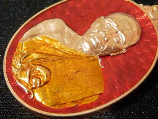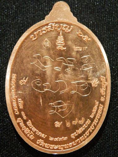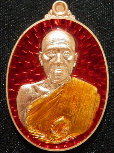 หลวงพ่อทอง วัดพระพุทธบาทเขายายหอม บารมีบุญ65 เนื้อทองแดงลงยาสีแดง กึ่งหลังเรียบรอยจารหลัง หมายเลข ๒๗๗