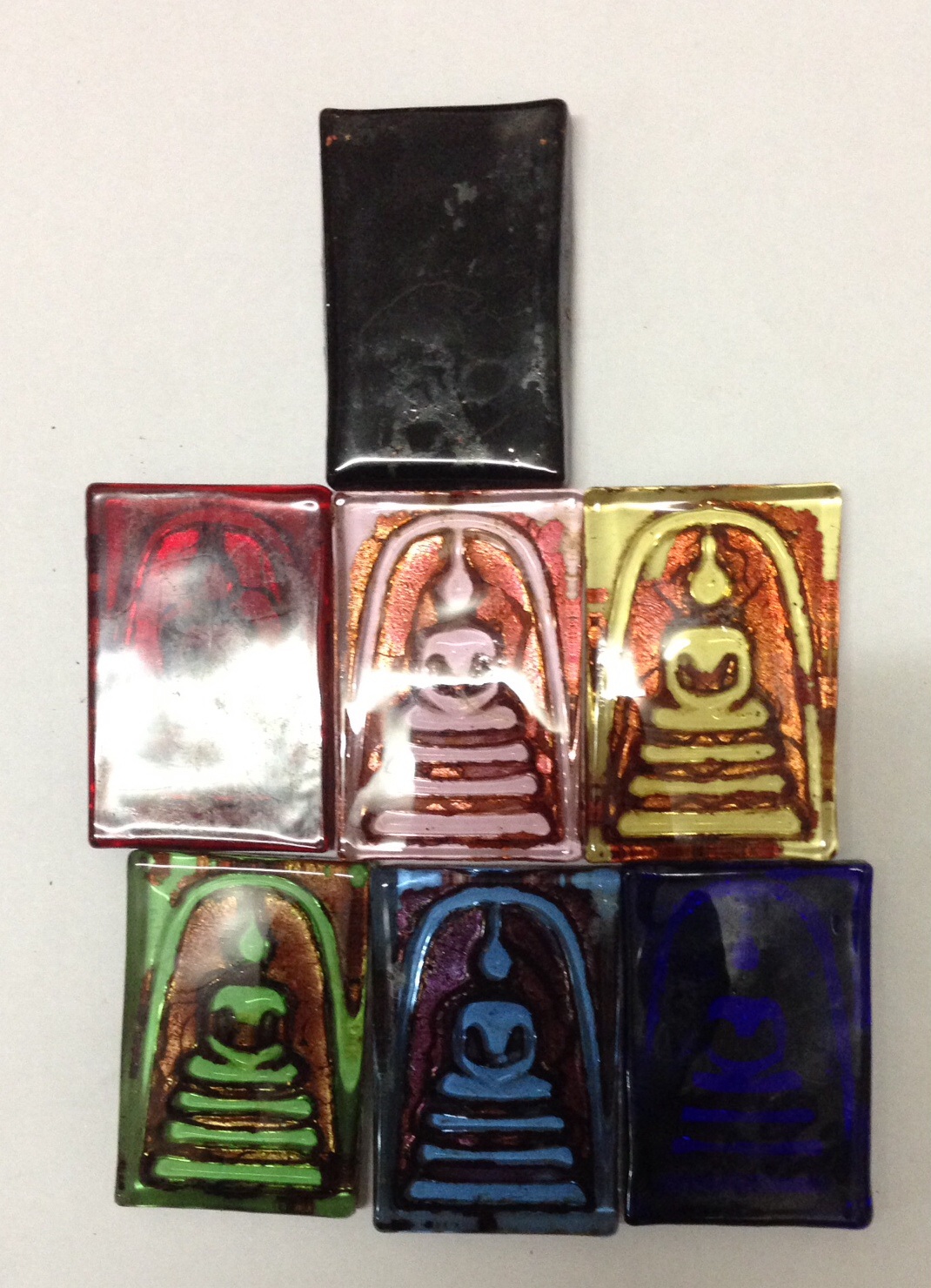 [ ขาย ] พระสมเด็จหยกเขียวและเนื้อแก้ว 7สีให้เช่ายกชุด7องค์