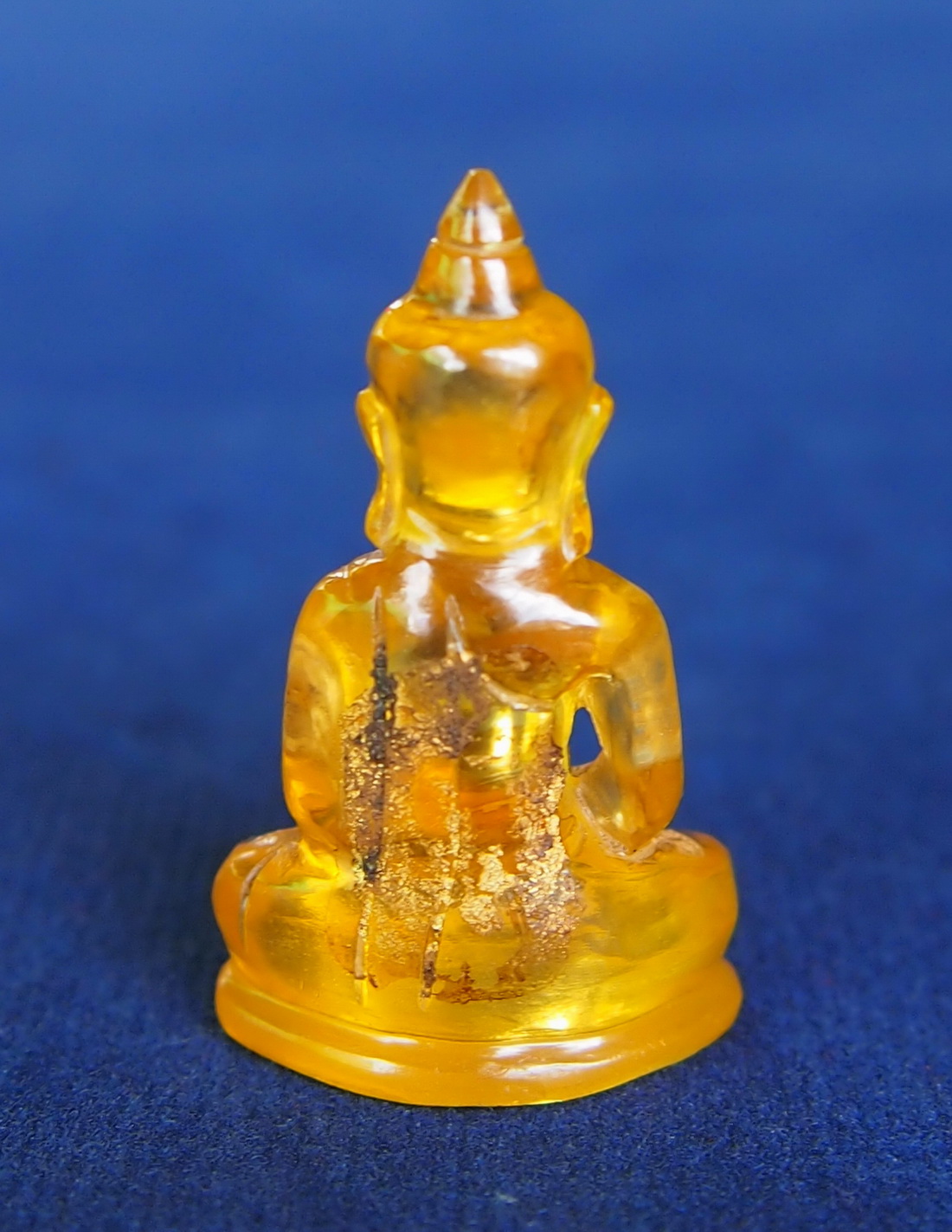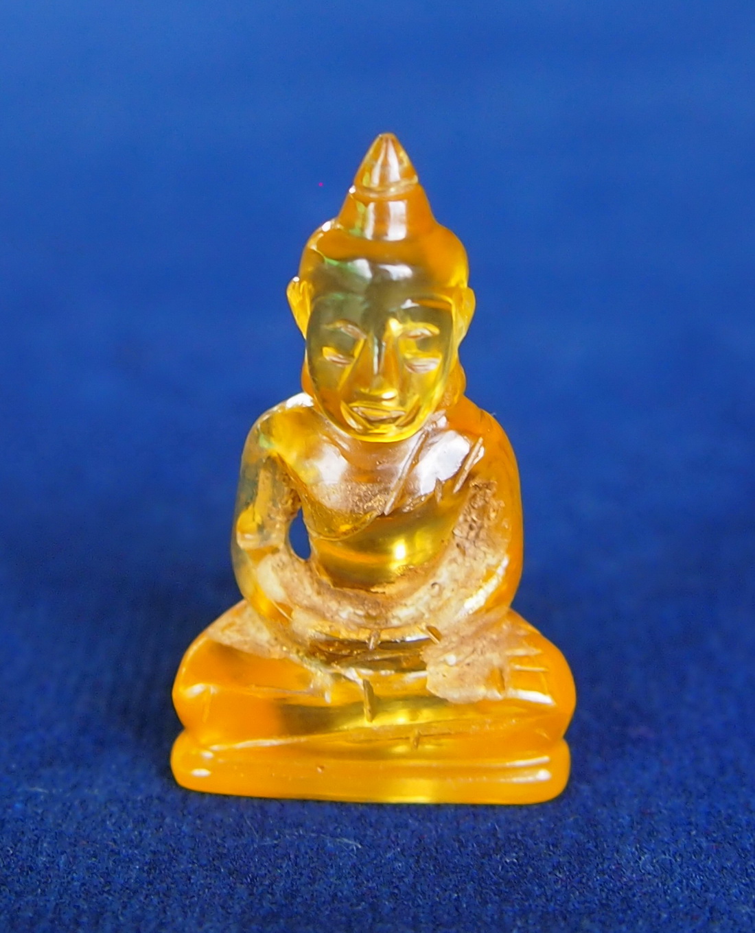 สีเหลือง ( บุศราคำ ) แกะเป็นพระเชียงแสน ปิดทองในกรุ สภาพสวยงามแบบเดิมๆ