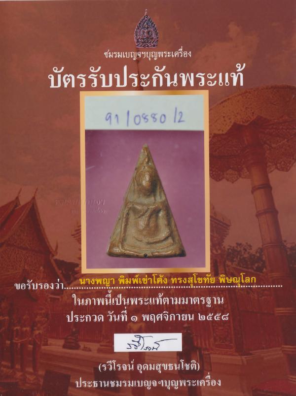 พระนางพญา พิมพ์เข่าโค้ง ทรงสุโขทัย พิษณุโลก องค์ที่ 2 มีใบรับรองพระแท้