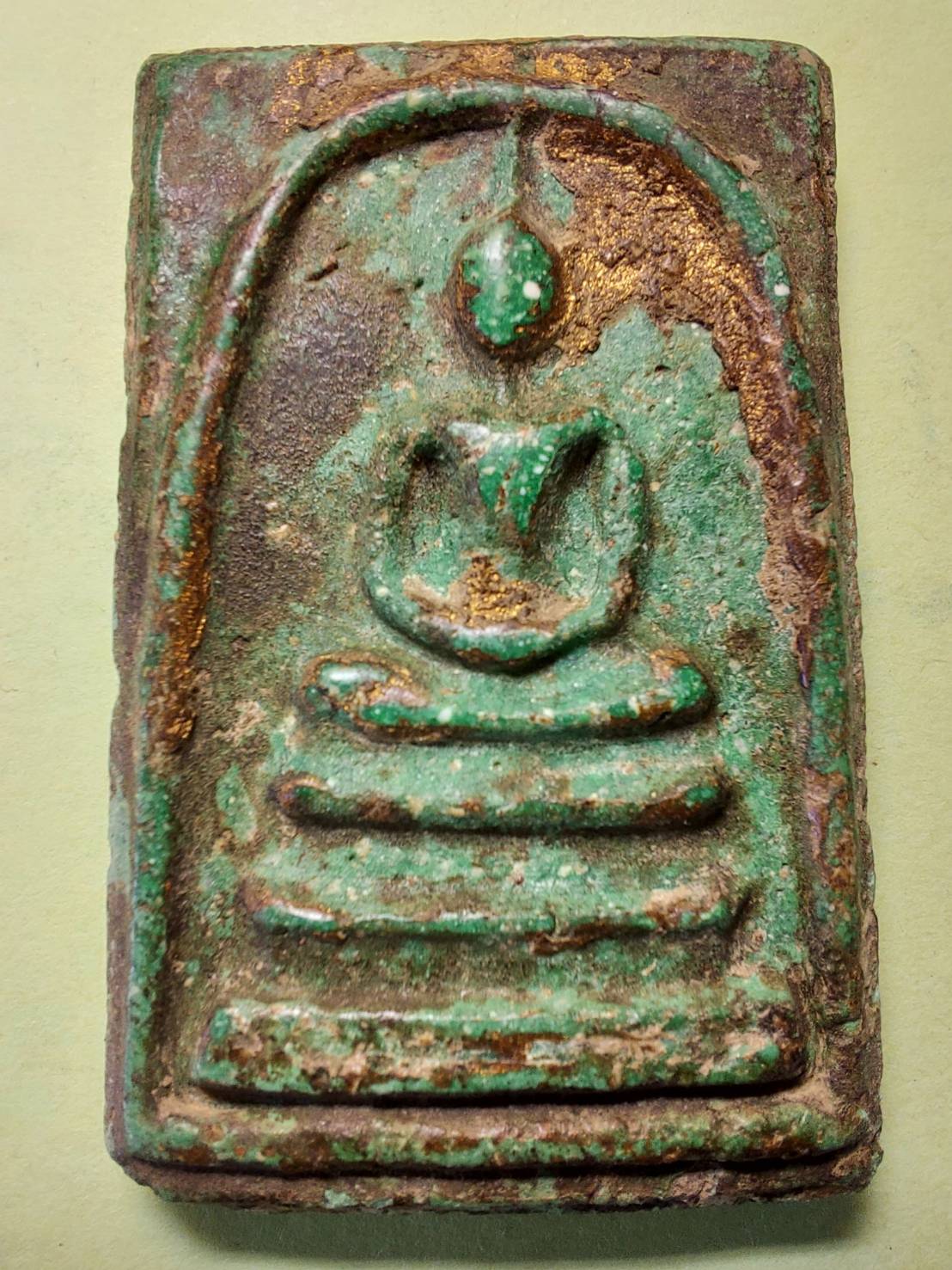 [ ขาย ] พระสมเด็จวัดระฆังพิมพ์ใหญ่เนื้อเขียวมรกต​ ลงรักทองเก่า [รหัส 132]