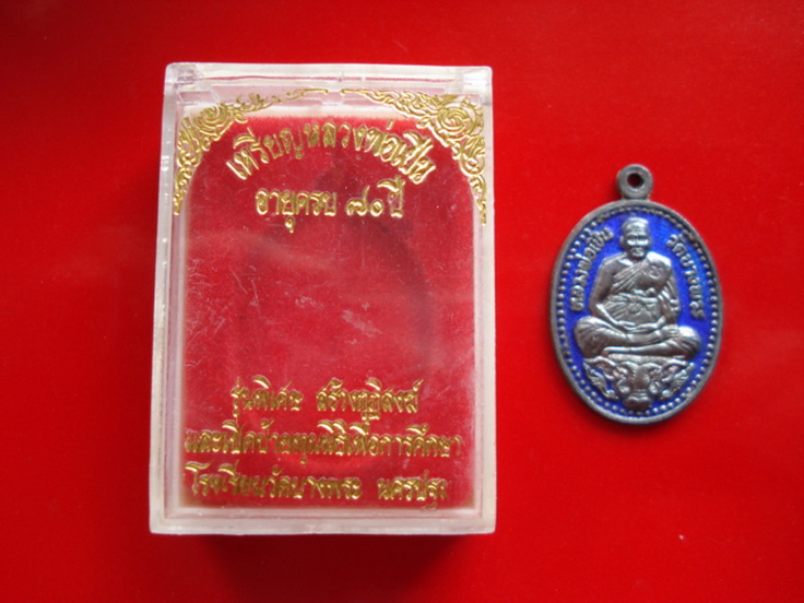 [ ขาย ] เหรียญหลวงพ่อเปิ่น วัดบางพระนั่งหัวหมูป่าเนื้อเงินลงยานํ้าเงิน(กล่องเดิม)