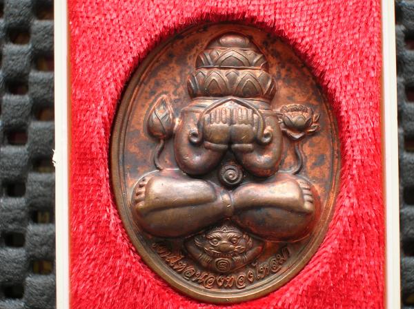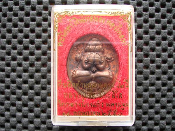 พระปิดตาเงินไหลนอง ทองไหลมา หลวงปู่เจือ ปิยสีโล วัดกลางบางแก้ว อ.นครชัยศรี จ.นครปฐม สร้างปี 2550 (เนื้อทองแดงผิวไฟ)