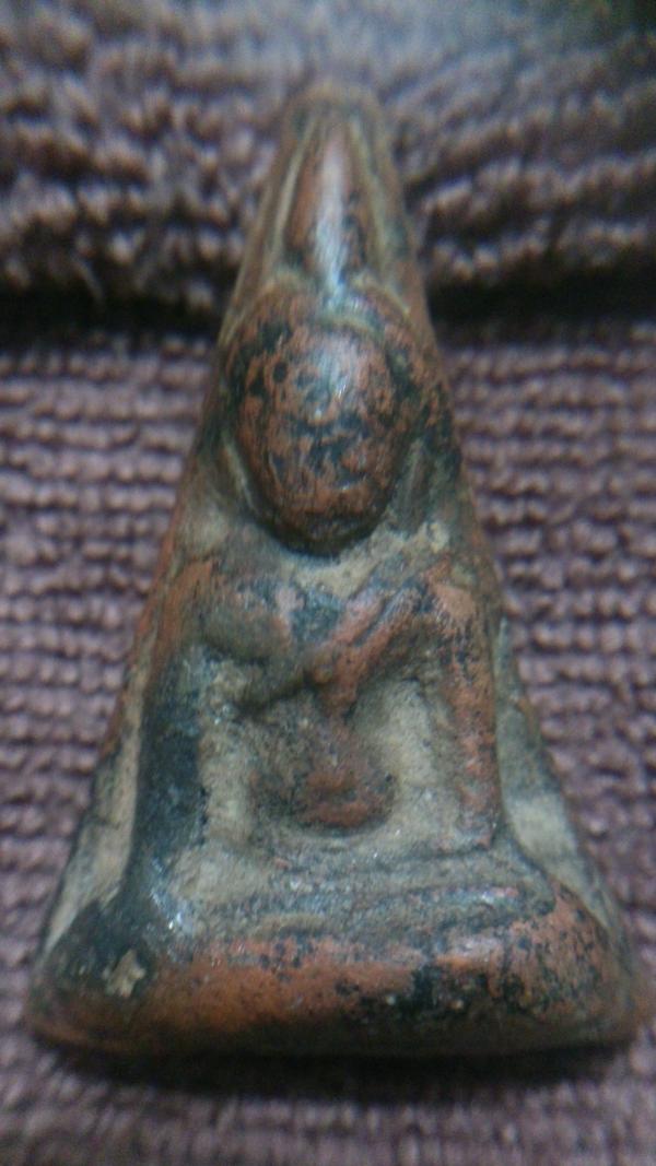 พระนางพญา เข่าตรง ไม่ผ่านการล้างทุกอย่างอยู่องค์พระครบ มีเม็ดคล้ายสีเขียวเล็กๆผุดกลางอกพระ