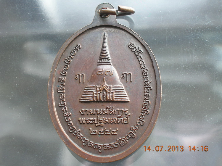 [ ขาย ] เหรียญทรงรูปไข่ พระร่วงโรจนฤทธิ์ งานนมัสการพระปฐมเจดีย์ ปี พ.ศ.๒๕๔๔ (เนื้อทองแดงรมดำ)