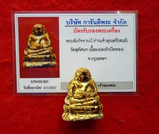 พระสังกัจจายน์เจ้าคุณศรี(สนธิ์)วัดสุทัศน์ฯ เนื้อผง( ลงรักปิดทอง) จ.กรุงเทพ ปี2485 พร้อมบัตรรับรองครับ
