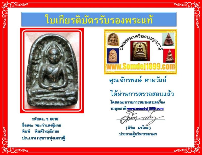 พระกำแพงซุ้มกอเนื้อดำ พิมพ์ใหญ่กนก กรุทุ่งเศรษฐีวัดพระบรมธาตุ จ.กำแพงเพชร  มีบัตรรับรองพระแท้