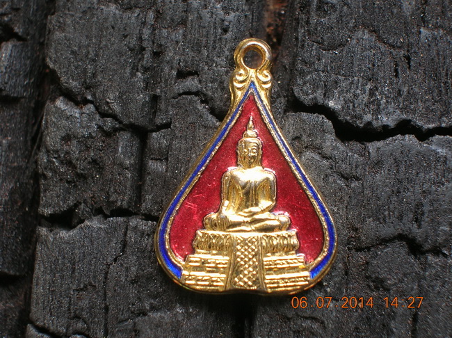 [ ขาย ] เหรียญหลวงพ่อวัดไร่ขิง พระอารามหลวง พิมพ์ทรงรูปใบโพธิ์ เนื้อทองแดงกะไหล่ทองลงยาสีแดงตัดขอบเหรียญลงยาสีน้ำเงิน ต.ไร่ขิง อ.สามพราน จ.นครปฐม จัดสร้างในปี ๒๕๓๘ (พิมพ์นิยมสวยหายากสุด)