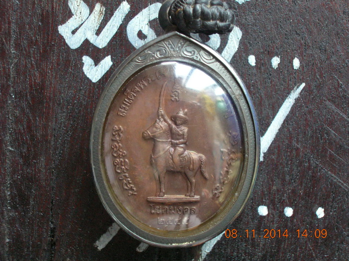 เหรียญพระบาทสมเด็จพระเจ้าตากสินมหาราช โชคมงคล วัดพิชัยสงคราม จ.พระนครศรีอยุธยา สร้างปี ๒๕๔๕ เนื้อทองแดงรมมันปู (เลี่ยมกรอบเงินแท้)