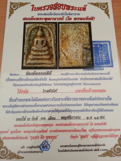 พระสมเด็จวัดระฆัง พิมพ์ทรงเจดีย์ พร้อมใบเซอร์ จาก ชมรมนักอนุรักษ์สะสมพระเครื่องสยาม