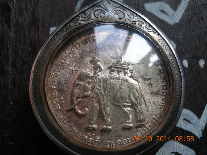 เหรียญยุทธหัตถี พระนเรศวรมหาราช เฉลิมพระนามตามสถานที่ทรงศึกยุทธหัตถี ณ ดอนเจดีย์ สุพรรณบุรี วัดป่าเลไลยก์ สุพรรรณบุรี สร้างปี 2513 (เนื้อนวโลหะคอ c พิมพ์นิยม)