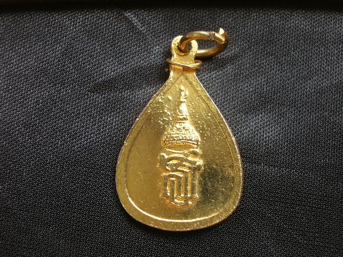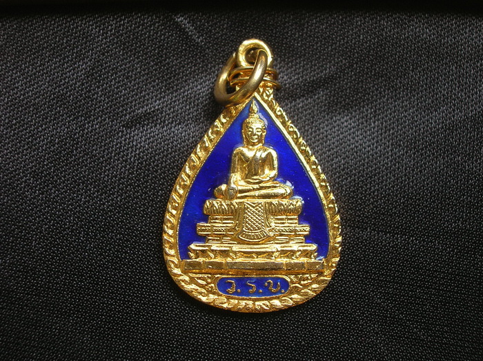 [ ขาย ] เหรียญหลวงพ่อวัดไร่ขิง ทรงหยดน้ำ (พระอารามหลวง) จ.นครปฐม ด้านหลัง พระนามาภิไธยย่อ "สธ." จัดสร้างในปี 2532 เนื้อกะไหล่ทองลงยาสีน้ำเงิน
